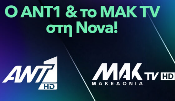 Ο ΑΝΤ1 και το ΜΑΚ TV (ξανά) στη Nova ΔΕΛΤΙΟ ΤΥΠΟΥ Η Nova, και ο Όμιλος ΑΝTENNA, ανακοινώνουν την έναρξη της συνεργασίας τους για τη μετάδοση των καναλιών ΑΝΤ1 και MAK TV μέσω της πλατφόρμας ΕΟΝ και δορυφόρου. Από σήμερα όλοι οι συνδρομητές της Nova θα απολαμβάνουν το αγαπημένο πρόγραμμα του ANT1 σε ανάλυση HD (στη θέση 8 μέσω Internet με δυνατότητα catch-up 7 ημερών και στη θέση 108 μέσω δορυφόρου) και του MAK TV σε ανάλυση HD (στη θέση 12 μέσω Internet με δυνατότητα catch-up 7 ημερών και 112 μέσω δορυφόρου) όποτε εκείνοι θέλουν και όπου και αν βρίσκονται. Με τον ΑΝΤ1 και το MAK TV η Nova προσφέρει ακόμα περισσότερες επιλογές στους συνδρομητές της, εξασφαλίζοντας πρόσβαση στα μεγαλύτερα ελεύθερα ελληνικά και διεθνή κανάλια μέσω της πλατφόρμας EON. Ο ΑΝΤ1 αποτελεί τη ναυαρχίδα του Ομίλου ΑΝΤΕΝΝΑ και από τη πρώτη στιγμή της ίδρυσης του, έχει σταθερά πρωταγωνιστικό ρόλο στη διαμόρφωση ενός σύγχρονου τηλεοπτικού τοπίου. Με ηγετική παρουσία, στρατηγικές επενδύσεις και καινοτόμες κινήσεις, ο ΑΝΤ1 έδωσε μια δυνατή πνοή στο ξεκίνημα της ιδιωτικής τηλεόρασης και έβαλε την προσωπική του σφραγίδα σε τηλεοπτικές προτάσεις που άνοιξαν νέους δρόμους στη μικρή οθόνη, δημιούργησαν τάσεις και καθιέρωσαν πρόσωπα που πρωταγωνιστούν σήμερα στον τηλεοπτικό χώρο. Το MAK TV, μέλος του Ομίλου ΑΝΤΕΝΝΑ, είναι ιδιωτικός τηλεοπτικός σταθμός πανελλαδικής εμβέλειας με σταθερή παρουσία στο ελληνικό τηλεοπτικό τοπίο. Από την πρώτη μέρα λειτουργίας του έχει προβάλλει πλήθος ελληνικών παραγωγών και σειρών, καθώς και βραβευμένες ξένες παραγωγές που μετρούν διεθνώς εκατομμύρια πιστούς θεατές. Το MAK TV αναδεικνύει και προβάλλει την ελληνική και τη διεθνή μυθοπλασία, παρέχοντας διαρκώς ποιοτικό περιεχόμενο που ψυχαγωγεί. Η Nova εμπλουτίζει την εμπειρία των συνδρομητών της, προσφέροντας από τις 2 Φεβρουαρίου εύκολη και άμεση πρόσβαση στο πλήρες πρόγραμμα του ΑΝΤ1. Οι θεατές θα έχουν τη δυνατότητα να απολαύσουν ποιοτική ψυχαγωγία, δημοφιλή διεθνή formats, δυνατές ελληνικές σειρές, καθώς αποκλειστικές μεταδόσεις κορυφαίων αθλητικών γεγονότων και φυσικά αντικειμενική ενημέρωση. Συγκεκριμένα, το πρόγραμμα περιλαμβάνει ενημερωτικές εκπομπές όπως «Καλημέρα Ελλάδα», «Αποκαλύψεις», «Νύχτα Αποκαλύψεων», «Ενώπιος Ενωπίω», «Πρόσωπο με Πρόσωπο» και «Υγεία Πάνω Απ’όλα», ψυχαγωγικές εκπομπές όπως «Το Πρωινό», «Σαββατοκύριακο Παρέα», «Rouk Zouk», «5X5», «Ράδιο Αρβύλα», «Boomers», «VINYΛΙΟ», «Ποιος θέλει να γίνει εκατομμυριούχος;», «The 2Night Show», «Don’t Forget the Lyrics», σειρές μυθοπλασίας υψηλών προδιαγραφών όπως «Grand Hotel», «Παιχνίδια Εκδίκησης», «Γιατί ρε πατέρα;», «Ο Δικαστής», αλλά και αθλητικά γεγονότα όπως Formula 1, UEFA EUROPA LEAGUE & UEFA CONFERENCE LEAGUE. Επιπλέον, η έγκαιρη και έγκυρη ενημέρωση των συνδρομητών εξασφαλίζεται μέσω των Μεσημβρινών και Κεντρικών Δελτίων Ειδήσεων του ΑΝΤ1. Στο μέλλον, οι συνδρομητές της Nova θα έχουν την ευκαιρία να απολαύσουν νέες εκπομπές, σειρές και μεγάλα ψυχαγωγικά show που θα ενταχθούν στο πρόγραμμα του ΑΝΤ1 και θα εμπλουτίσουν ακόμα περισσότερο το περιεχόμενο της πλατφόρμας: «Moments», «Σούπερ Ήρωες», «Κάτι Ψήνεται», «Flathunters», «Extreme makeover – Home edition», «VIΠ – Καλά Γεράματα», «Roadshow», «Dragons Den Greece», «Your Face Sounds Familiar» κ.ά. Στην πλατφόρμα της Nova είναι διαθέσιμο από σήμερα και το ΜΑΚ TV που αποτελεί σταθερή επιλογή ψυχαγωγίας για όλη την οικογένεια, με βραβευμένες ξένες παραγωγές όπως: «CRIMINAL MINDS», «NCIS», «MAYDAY», «ΧΤΥΠΟΚΑΡΔΙΑ ΣΤΟ ΜΠΕΒΕΡΛΙ ΧΙΛΣ», «GREY’S ANATOMY», 