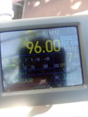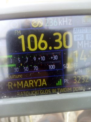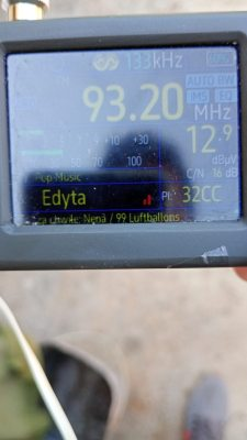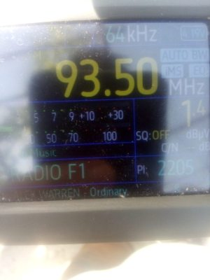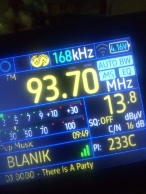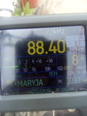 Για μια στιγμή χάθηκε το σποραδικό ε,αλλά εμφανίστηκε ξανά,στους 90.7 τσιφτετέλια από Μέση Ανατολή,91.5 φέρον,91.7 άγνωστος,94.2 δυο σήματα τσιφτετέλια και το κοράνι,94.4 φέρον,94.5 ξένος εκφωνητής,95.7 τσιφτετέλια,και στους 101.0 το κοράνι,λήψεις με TEF6686 στο Δάσος Χαϊδαρίου.