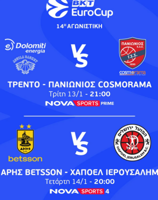 2. Πλούσιο μπασκετικό θέαμα έρχεται στις οθόνες των συνδρομητών της Nova αυτή την εβδομάδα με EuroLeague, EuroCup και Αθηναϊκό Qualco! ΔΕΛΤΙΟ ΤΥΠΟΥ Στην κορυφαία ευρωπαϊκή διασυλλογική διοργάνωση, στην EuroLeague και για την 22η αγωνιστική, ο Ολυμπιακός δοκιμάζεται στην «Stark Arena» του Βελιγραδίου απέναντι στην Παρτίζαν (14/1, 20:30), ενώ ο Παναθηναϊκός AKTOR κοντράρεται στο Μόναχο με την Μπάγερν ((15/1, 20:30). Παράλληλα, στο πρόγραμμα δεσπόζει και το ισπανικό «El Clasico», Ρεάλ Μαδρίτης – Μπαρτσελόνα (16/1, 21:45). Η απόλυτη μπασκετική εκπομπή, Playmakers θα μεταφέρει όλα όσα συμβούν στα παρκέ της EuroLeague με την πληρέστερη και αρτιότερη δημοσιογραφική κάλυψη και εκλεκτούς καλεσμένους. Το EuroCup συνεχίζεται με την 14η αγωνιστική οι συνδρομητές θα απολαύσουν τις αναμετρήσεις των δύο ελληνικών ομάδων, Τρέντο-Πανιώνιος Cosmorama Travel (13/1, 21:00) και Άρης Betsson-Χάποελ Ιερουσαλήμ (14/1, 20:00). Περισσότερα εδώ :typologies.gr